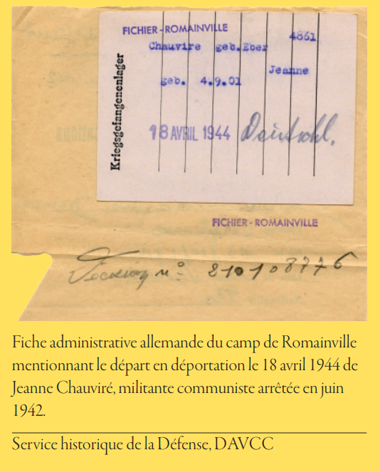 La déportation par grands convois massifs vers les camps de concentration devient, du printemps 1943 jusqu’à la Libération, l’élément central de la politique répressive allemande en France occupée. Dans ce dispositif, le camp de Compiègne et le fort de Romainville sont les principaux « lieux de transit » vers les camps nazis. Des détenus originaires de toute la France y