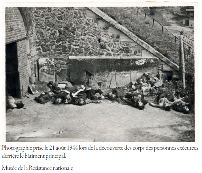 la gare de Pantin. Le 19 août, la garnison allemande remet à la Croix-Rouge la cinquantaine de derniers détenus, mais elle ne quitte définitivement les lieux que le lendemain. Or, entre-temps, onze résistants et civils de la région parisienne, tout juste faits prisonniers, sont amenés au fort. Ils y passent la nuit. Le matin du 20 août, au moment du départ, la garnison les fusille et brûle leurs corps. Le 21 août, les habitants des Lilas