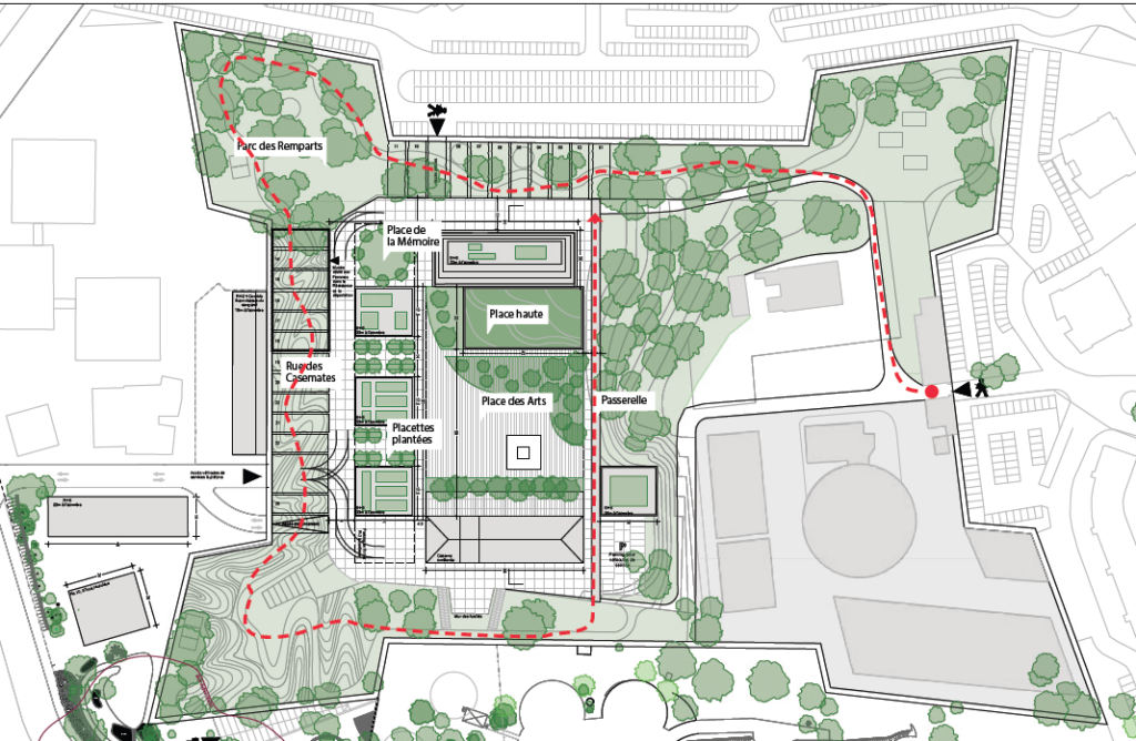 Le parc des Remparts permettra une déambulation en boucle de plus de 1 km de long pour les promeneurs. En tout ce sont plus de 2 hectares de parc, de promenade et de détente inscrits dans le parc des Hauteurs, dont une grande majorité d’espaces naturels boisés. Une ferme Urbaine est en projet sur les remparts et les toits des