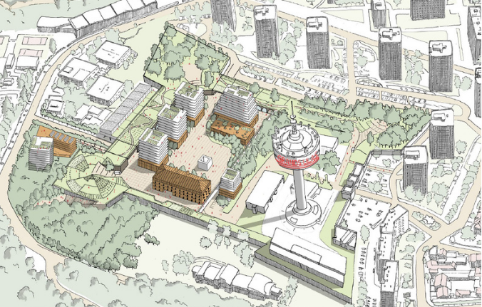 bâtiments. Au cœur du futur site, une place des Arts plantée et aménagée avec des matériaux issus du réemploi.
